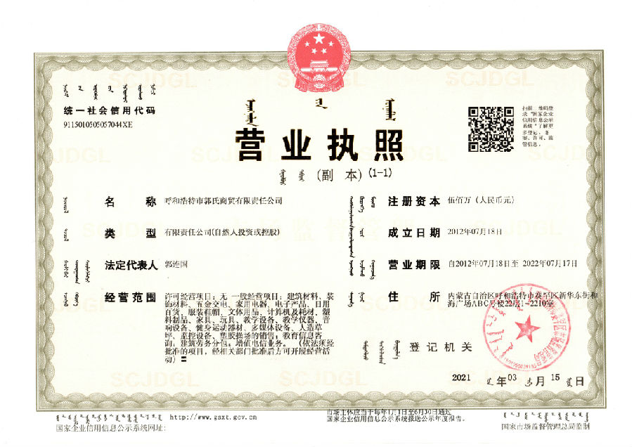 您好,歡迎訪問 呼和浩特市郭氏商貿(mào)有限責(zé)任公司